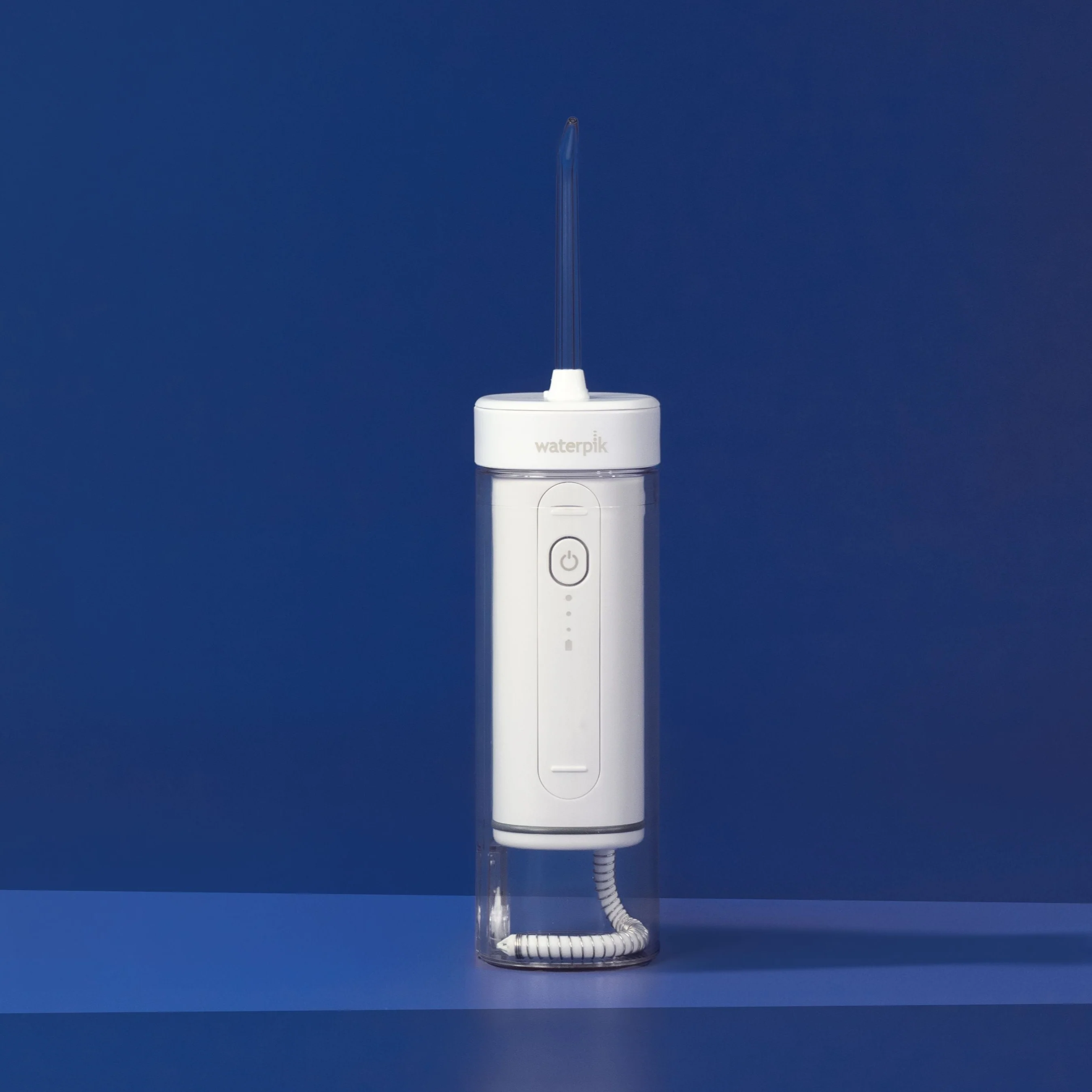 Cordless Slide is the go anywhere, store anywhere water flosser. The convenient design slides to 50% of its size for easy storage and travel. It features ultra-quiet operation, global voltage compatibility, and may be used in the shower.